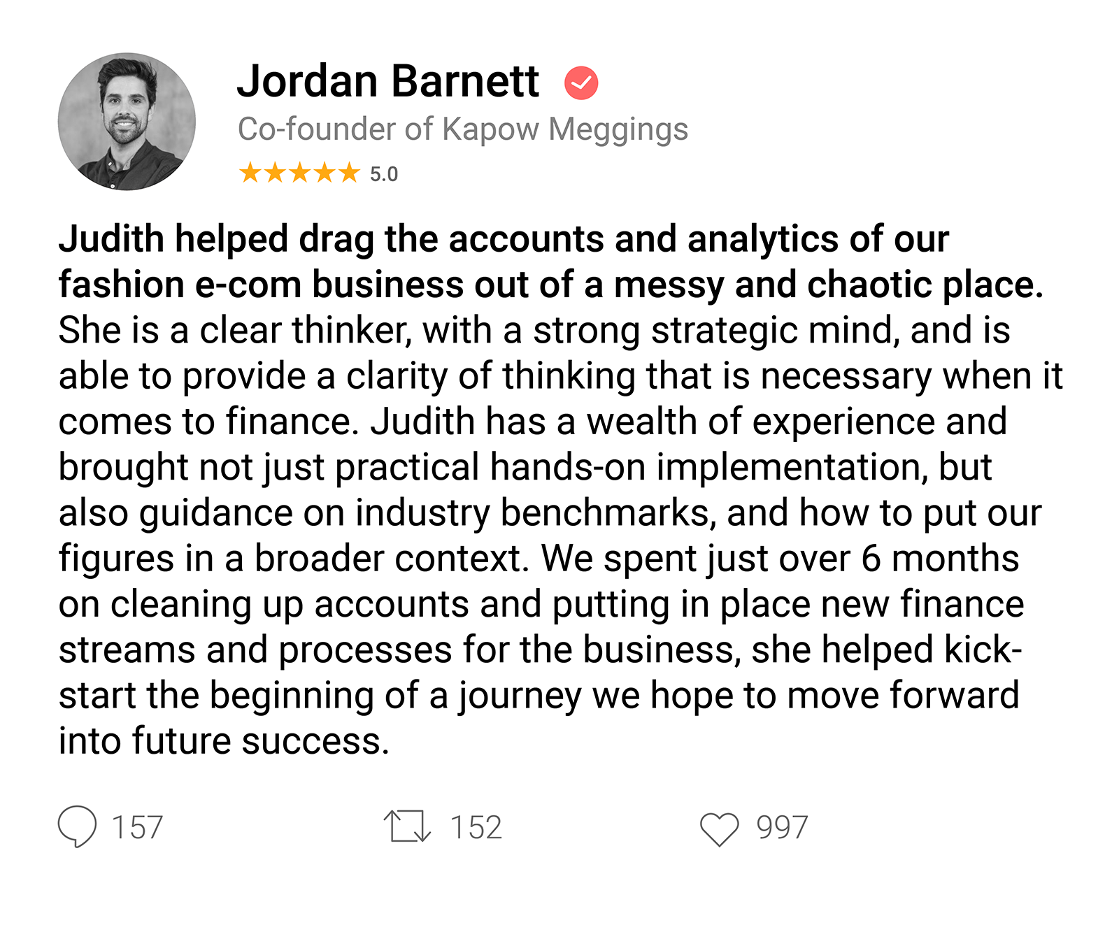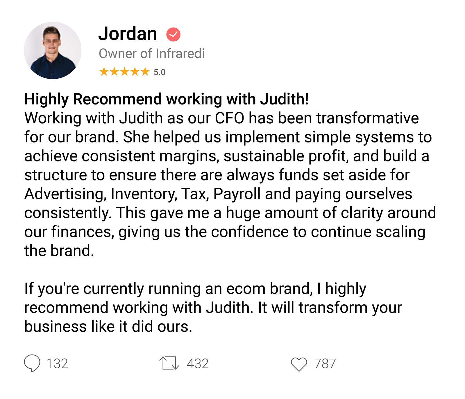 I was formerly a corporate finance… not your average accountant. Most accountants are focused on compliance, not strategy. They'll file your taxes, sure, but they won't help you optimise your eCommerce operations.